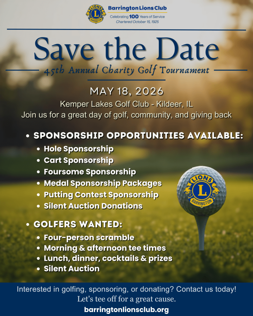 The Barrington Lions Club celebrates nearly 100 years of service in the Barrington area communities. Our club was organized October 15, 1925.